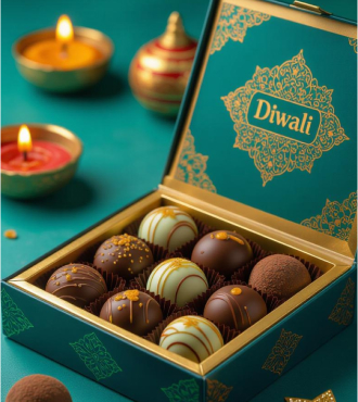 A luxurious assortment of truffles blending white, milk, and dark chocolate, each adorned with golden dust and elegant drizzles. Soft, creamy, and full of festive spirit, they create a moment of celebration in every bite. Box design may vary based on availability.