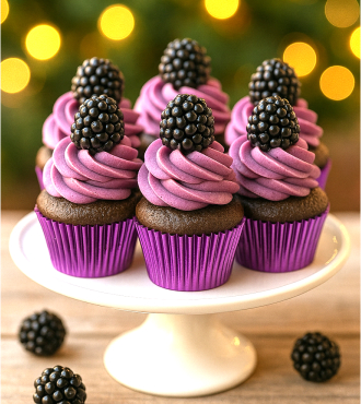 Bold and beautiful, these cupcakes feature swirls of purple frosting topped with juicy blackberries and dressed in vibrant purple wrappers. Available in five unique flavors for a taste as memorable as the look.