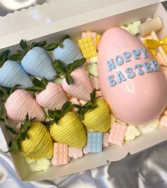 Our Egg-citing Easter Dipped Strawberries are a sweet and festive treat that will delight your taste buds. Dipped in pastel colored Belgian white chocolate, these strawberries are the perfect addition to any Easter basket or dessert table. And the fun part? They come with an Easter egg! This colorful and delicious dessert is sure to satisfy your sweet tooth and add a special touch to your Easter celebrations.