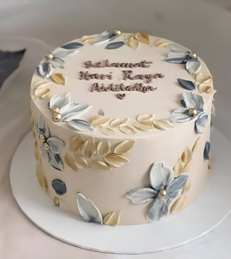 Celebrate in style with this beautifully hand-painted floral cake, designed with elegant blue and gold petals. Delicate pearl accents add a touch of luxury, while the smooth frosting creates a flawless finish. A perfect way to mark special moments with beauty and sweetness combined.