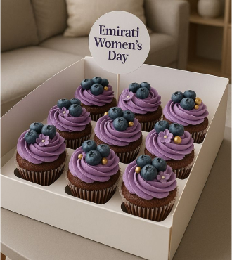Chocolate cupcakes decorated with rich purple buttercream, fresh blueberries, and gold pearl accents. This set offers a balance of fruity freshness and indulgent sweetness. Available in chocolate, Oreo, strawberry, red velvet, and coconut flavors.