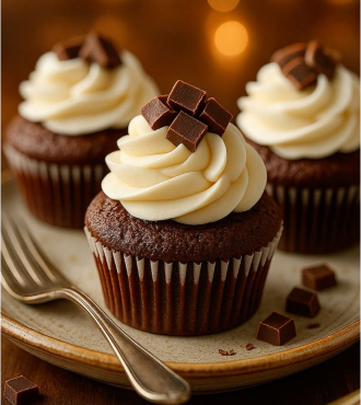 Featuring a rich chocolate sponge topped with silky vanilla buttercream and garnished with petite chocolate cubes, these cupcakes are a timeless treat. Their elegant presentation and perfect flavor balance make them ideal for any occasion, with five tempting flavors available: chocolate, Oreo, strawberry, red velvet, and coconut.