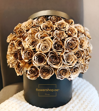Radiate luxury with our Golden Serenity Bouquet, a breathtaking collection of 50 gold roses. This stunning arrangement is the ultimate statement of opulence, perfect for making a grand impression.