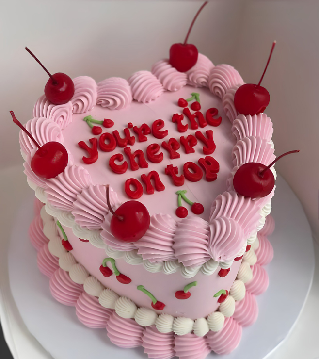 With a heart-shaped design, bright cherries, and elegant frosting, this pink cake exudes charm and sweetness. It’s a delightful way to express love and appreciation.