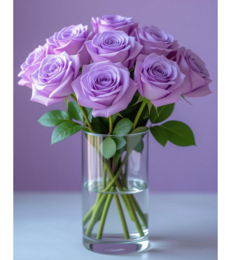 A fresh display of lavender roses beautifully arranged in a transparent vase. The simple yet elegant design conveys beauty and affection in the most refined way, making it a graceful choice from online flowers Dubai. Depending on availability, components such as vase or hatbox color and design, may vary.