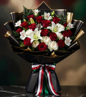 Celebrate the spirit of the UAE with this elegant National Day arrangement, thoughtfully styled in the iconic colours of the nation. Designed to add pride, charm, and a festive touch to any space, it’s perfect for gifting or enhancing your National Day décor.