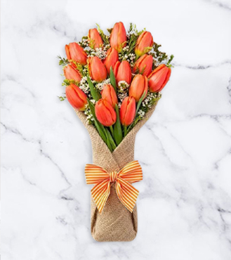 Brighten someone's day with the Orange Roses Bouquet, a vibrant and cheerful display of orange roses that exude warmth and happiness, perfect for any joyful occasion.
