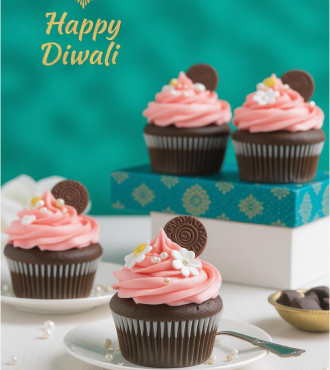 Dark chocolate cupcakes finished with swirls of pink frosting, delicate daisies, and chocolate discs create a vibrant contrast of flavor and color — soft, smooth, and beautifully festive with every bite.