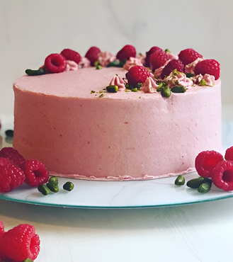 Oohs and aahs come free with our divine Strawberry Cake. Inside, moist chocolate cake pairs beautifully with rose-colored icing, made by combining fresh strawberry puree with our signature cream cheese frosting. When you want a delicious, showstopping cake, this is it!