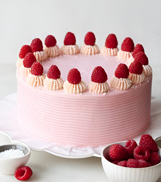 Oohs and aahs come free with our divine Strawberry Cake. Inside, moist chocolate cake pairs beautifully with rose-colored icing, made by combining fresh strawberry puree with our signature cream cheese frosting. When you want a delicious, showstopping cake, this is it!
