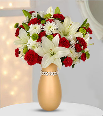 Picked fresh from the farm to create the perfect choice when you're looking for an impeccable gift (or gifts), the Ready for Fun Bouquet blends sophistication with charming simplicity to offer warm wishes to your special recipient. Hand gathered in select floral farms, these casually elegant arrangements combine red roses, white & lighthearted Asiatic lilies, daisies, minicarnations & starry gypsophila in clear vase. Perfect to dress up a dining room table with a touch of glamour, or to spread their joy throughout the house, outside on a patio or deck. No matter what message you want them to send, these lush, full bouquets deliver it with eloquent sincerity & a burst of French accented, garden gorgeous beauty. Plus they come with the option of delighting one or two lucky people.