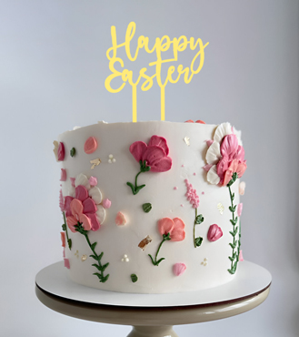 Artfully adorned with hand-piped buttercream flowers in soft pinks and greens, this cake is a true edible garden. Whether you're hosting Easter brunch or gifting a springtime surprise, it's available in five delightful flavors—chocolate, Oreo, strawberry, red velvet, and Neapolitan.