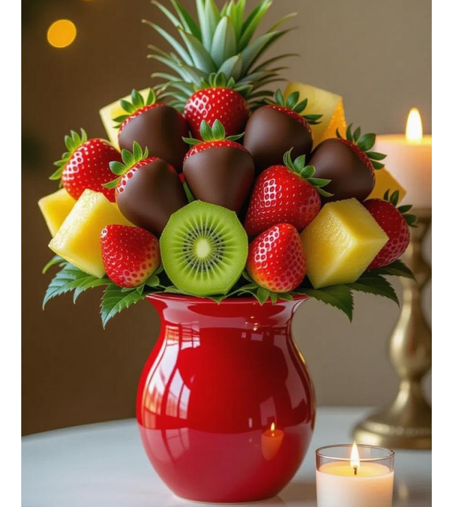 Brighten their day with a fruit bouquet bursting with juicy pineapples, sweet strawberries, zesty kiwi, melon, and more. It is a gift that is as wholesome as it is thoughtful.