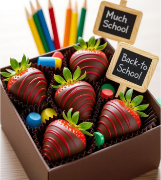 Juicy strawberries are hand-dipped in decadent chocolate and finished with elegant red drizzle detailing. The bold look and irresistible flavor make these treats perfect for celebrating milestones or simply enjoying a luxurious moment of indulgence.