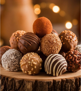 This assortment features truffles covered with rich Belgian chocolate in a range of coatings, from nutty and crunchy to smooth and silky. Each one delivers a luxurious bite that will satisfy any chocolate craving.