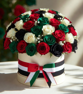 Celebrate the spirit of the UAE with this elegant National Day arrangement, thoughtfully styled in the iconic colours of the nation. Designed to add pride, charm, and a festive touch to any space, it’s perfect for gifting or enhancing your National Day décor.