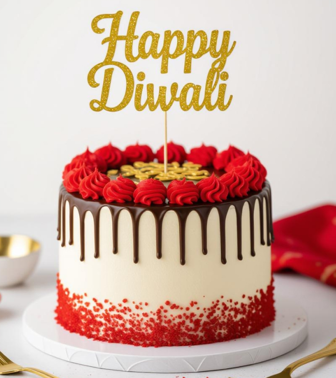 Soft red velvet sponge with layers of creamy frosting, finished with a glossy chocolate drip and golden shimmer. The richness of cocoa and cream is perfectly balanced by a light texture that melts in every bite.
