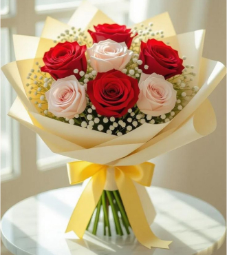 Celebrate love, joy, and every special moment with this stunning bouquet of pink and red roses. Soft pink roses convey admiration and sweetness, while vibrant red roses speak the language of passion and romance. Perfect for anniversaries, birthdays, or simply to brighten someone's day, this elegant arrangement is a heartfelt way to show you care, beautifully offered through flowers Dubai. Depending on availability, components such as vase or hatbox color and design, may vary.
